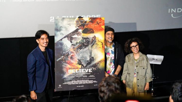 Kisah Believe-Takdir, Mimpi, Keberanian, yang diadaptasi dari buku biografi "Believe - About Faith, Dream, and Courage," menyuguhkan narasi perjuangan Tentara Nasional Indonesia (TNI) dari masa ke masa, dengan latar belakang historis Operasi Seroja 1975 serta operasi militer di Timor Timur pada tahun 1995 dan 1999. Produser Celerina Judisari dari Rumah Produksi Bahagia Tanpa Drama menyatakan film ini dirancang untuk menghadirkan gambaran pertempuran yang realistis, baik dari segi cerita maupun teknis produksi, menuntut komitmen tinggi dari seluruh tim. Proses riset mendalam dilakukan untuk memastikan akurasi detail sejarah, mulai dari desain seragam, setting desa Timor Timur era 1970-an, hingga jenis senjata yang digunakan. Produksi melibatkan lebih dari 22 ledakan besar dan delapan adegan kontak senjata, termasuk pembangunan dua kampung yang kemudian dibakar untuk keperluan adegan.